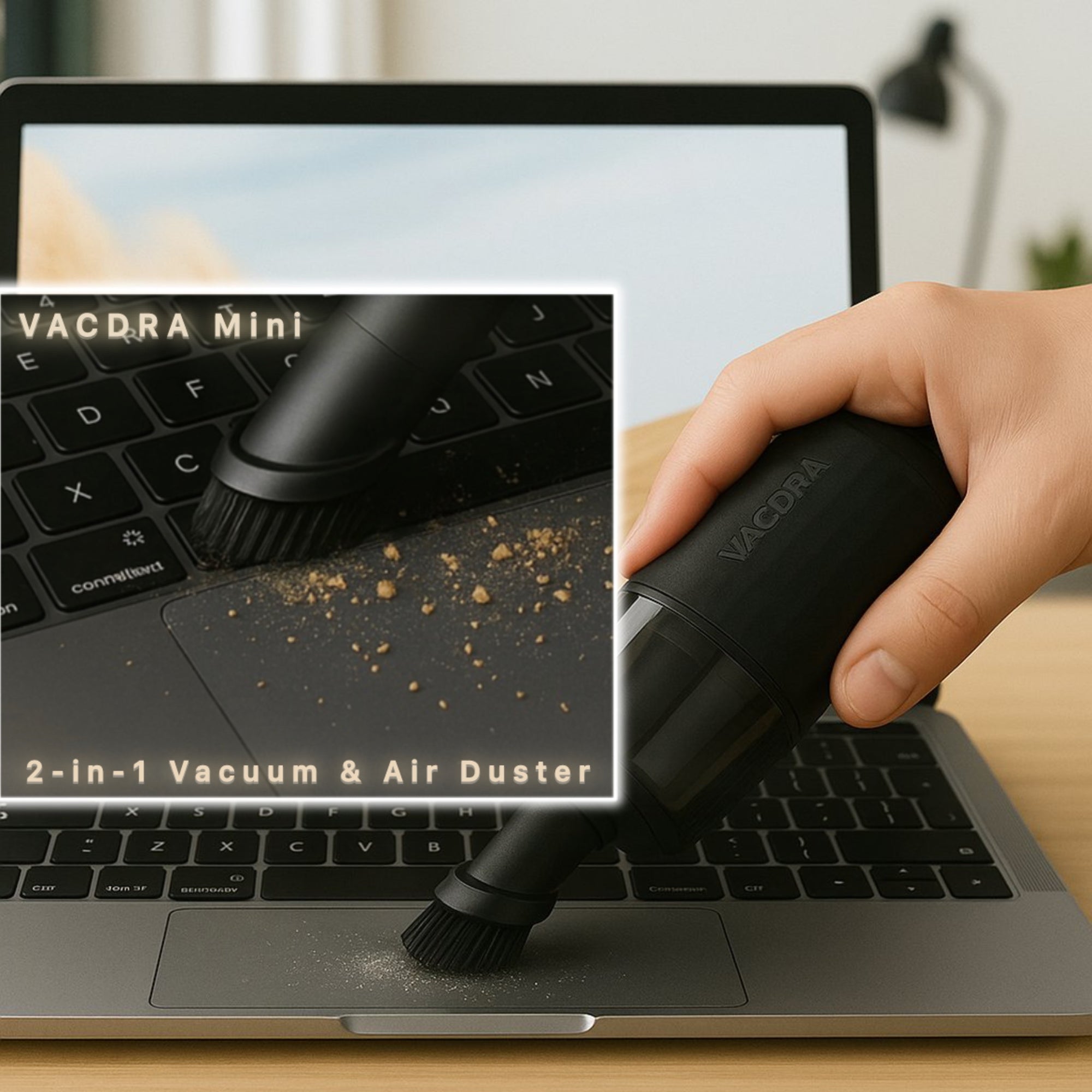 A compact yet powerful 2-in-1 vacuum and air duster designed for effortless cleaning of desktops, keyboards, and small spaces. The VACDRA Mini easily removes eraser crumbs, pet hair, and dust from even the tightest corners.